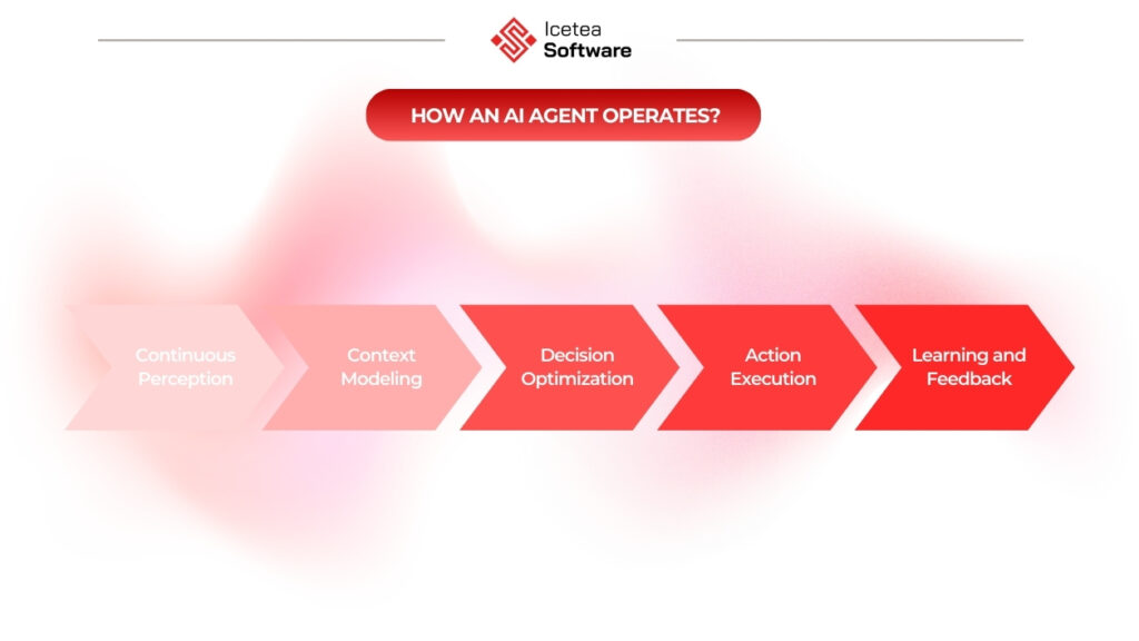 To properly frame AI agents explained, it is helpful to examine the intelligence loop that drives agent-based systems. While implementations vary, most enterprise AI agents operate through 5 independent stages: